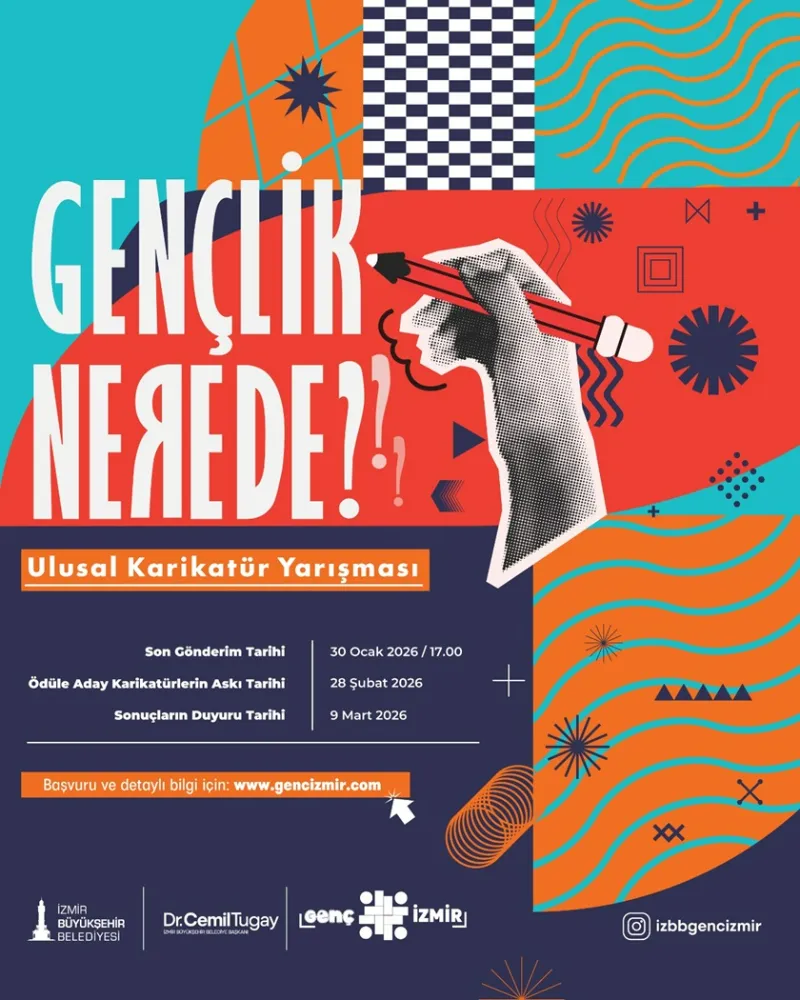 İzmir Büyükşehir Belediyesi, gençlerin sesini sanatın gücüyle duyurmak amacıyla “Gençlik Nerede?” temalı Ulusal Karikatür Yarışması düzenliyor. Gençliğin bugünü ve yarınına dair umutlarına ışık tutacak yarışmada dereceye girenlere toplamda 130 bin TL ödül dağıtılacak.