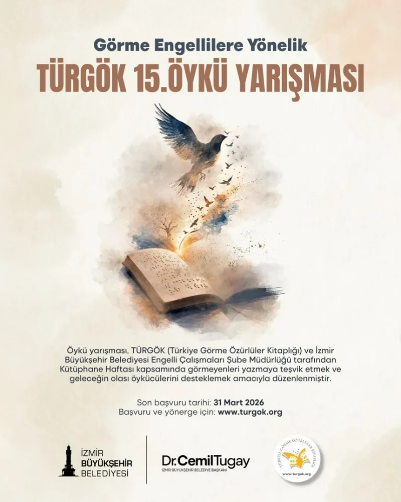 Türkiye Görme Özürlüler Kitaplığı (TÜRGÖK) ve İzmir Büyükşehir Belediyesi, Kütüphane Haftası kapsamında ödüllü TÜRGÖK 15. Öykü Yarışması düzenliyor. İki ayrı kategoride yapılacak yarışmanın son başvuru tarihi ise 31 Mart olarak belirlendi.