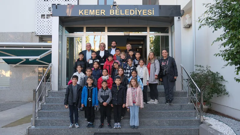 Kepez'deki Mimar Sinan İlkokulu 4/F sınıfı öğrencileri, öğretmenleri eşliğinde Kemer Belediye Başkan Vekili Sema Özdemir'i ziyaret ettikten sonra Kemer Belediyesi Kültür Evi'nde incelemelerde bulundu.