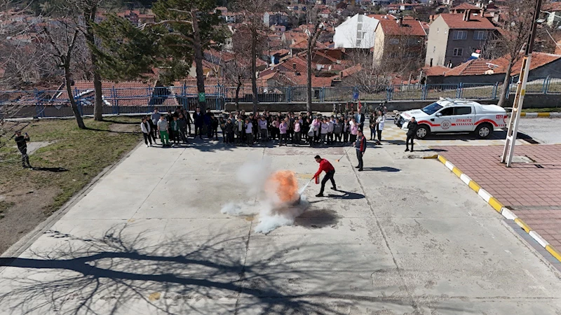 Bozüyük Belediyesi İtfaiye Müdürlüğü ekiplerince 100. Yıl Ortaokulu öğrencilerine temel yangın eğitimi verildi.
