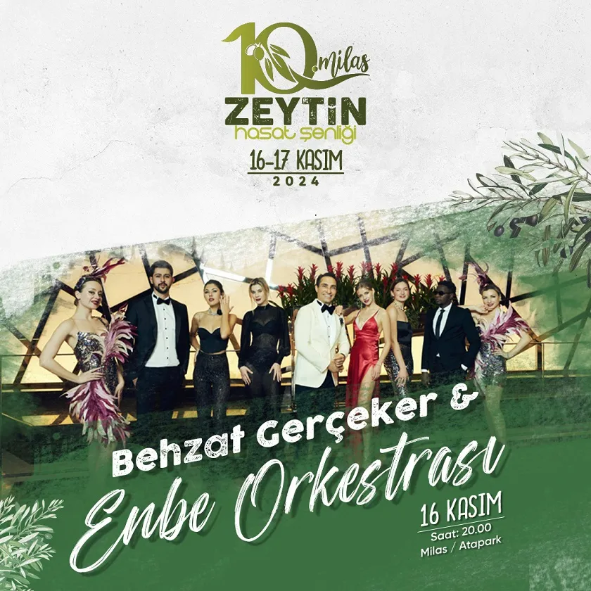 Milas’ın coğrafi işaretli ürünlerini dikkat çekmek amacıyla düzenlenen 10. Milas Zeytin Hasat Şenliği, ziyaretçilerine zeytin hasatına dair zengin bir kültürel ve gastronomik deneyim sunacak. Yöresel folklor gösterileri, sıkım atölyeleri, söyleşiler, gurme notları, workshoplar, konserler, sergiler, yarışmalar ve panellerin yer alacağı şenlikte; Türkiye'nin önde gelen zeytin ve zeytinyağı uzmanları, gurmeler, şefler ve sanatçılar bir araya gelecek. Program kapsamında, 16 Kasım’da Behzat Gerçeker ve ENBE Orkestrası, 17 Kasım’da ise Emre Fel sahne alarak müzikseverlere keyifli anlar yaşatacak.