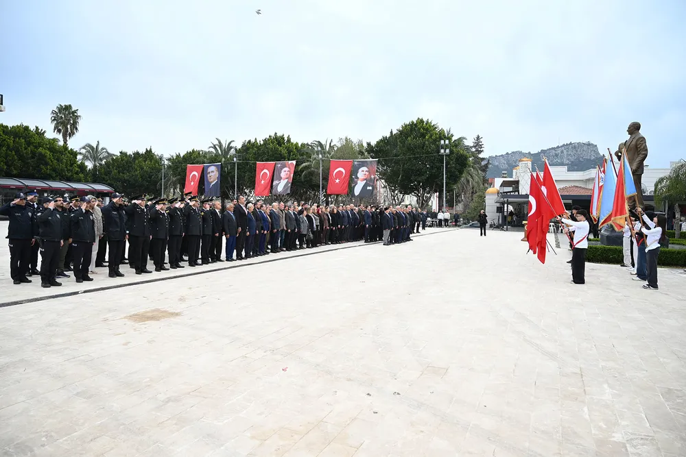 Çanakkale Deniz Zaferi'nin 111. yıl dönümünde Kemer Cumhuriyet Meydanı'nda düzenlenen törene ilçe protokolü, gazi ve şehit aileleri katıldı.