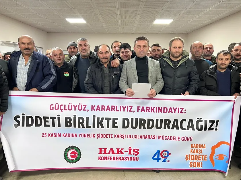 HAK-İŞ olarak Kadına yönelik şiddetin kadın erkek hep birlikte birlik ve dayanışma içerisinde engellenebileceğine inanıyoruz. “Aciz olmayın kadına şiddet uygulamayın” diyoruz.