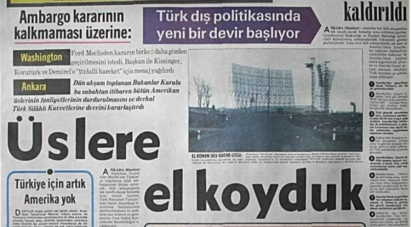 Yani NATO kullanımı dışındaki bütün ABD üs ve tesisleri Türkiye’nin kontrol ve hakimiyetine geçiyor ve bu üslere Türkiye Cumhuriyeti bayrağı dikiliyordu. Bu karar üzerine ABD Kongresi, 2 Ekim 1975’te ambargoyu kısmi olarak kaldırmaya karar verdi. Yani 5 Şubat 1975’ten önce parası ödenen silahlar Türkiye’ye gönderilecekti. Ancak bu da Türkiye’yi tatmin etmedi, Türkiye ambargonun tamamen kaldırılmasında ısrar etti.