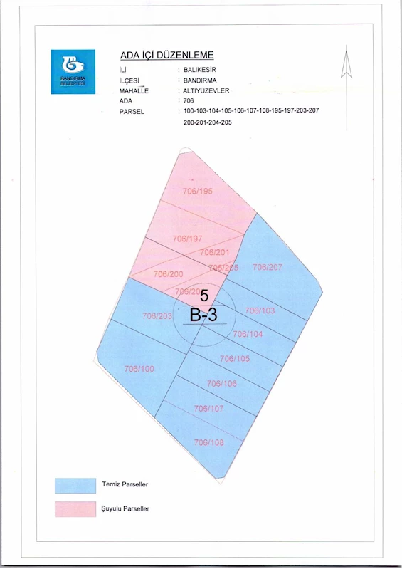 Belediye Encümeninin 30.10.2024 tarih ve 1025 sayılı Encümen kararı ile 600 Evler Mahallesi, 706 ada, 100-103-104-105-106-107-108-195-197-200-201-203-204-205-207 nolu parsellere ait ada içi düzenlemesinin, 1/1000 ölçekli Bandırma Uygulama İmar Planı notlarının 137. Maddesi ve 3194 sayılı İmar Kanununun 19. maddesi gereği onaylanmasına,