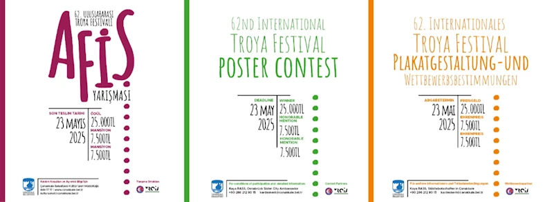 9-13 Ağustos 2025 tarihleri arasında düzenlenecek 62. Uluslararası Troya Festivali'nin duyurularında kullanılacak afişi belirleyecek Afiş Tasarım ve Uygulama Yarışması için başvurular başladı.