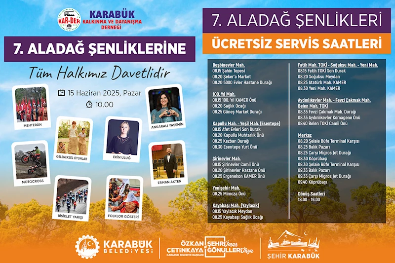 15 Haziran Pazar günü Aladağ’da; kültür, spor ve müziğin buluştuğu dopdolu bir gün sizleri bekliyor.