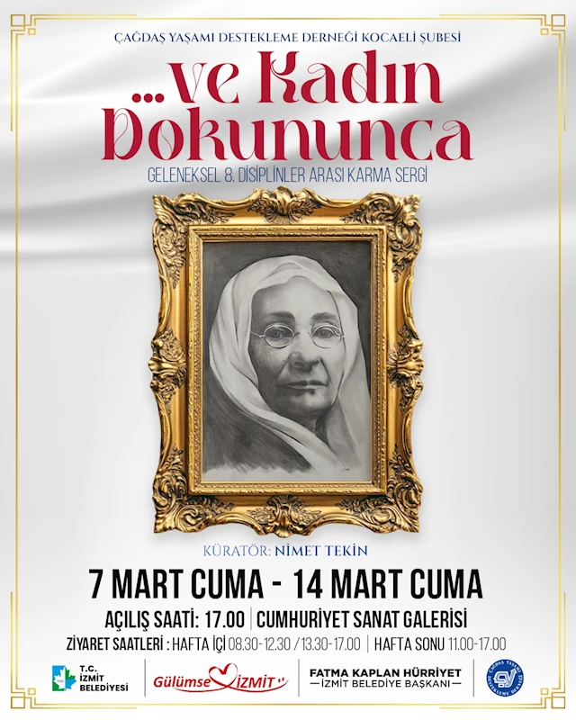 Çağdaş Yaşamı Destekleme Derneği Kocaeli Şubesi tarafından 8 Mart Emekçi Kadınlar Gününe özel geleneksel “…ve Kadın Dokununca” 8. Disiplinler arası Karma Sergisi 7 Mart Cuma günü saat 17.00’de İzmit Cumhuriyet Sanat Galerisinde açılıyor. Sergi 14 Mart Cuma gününe kadar ziyarete açık olacak.