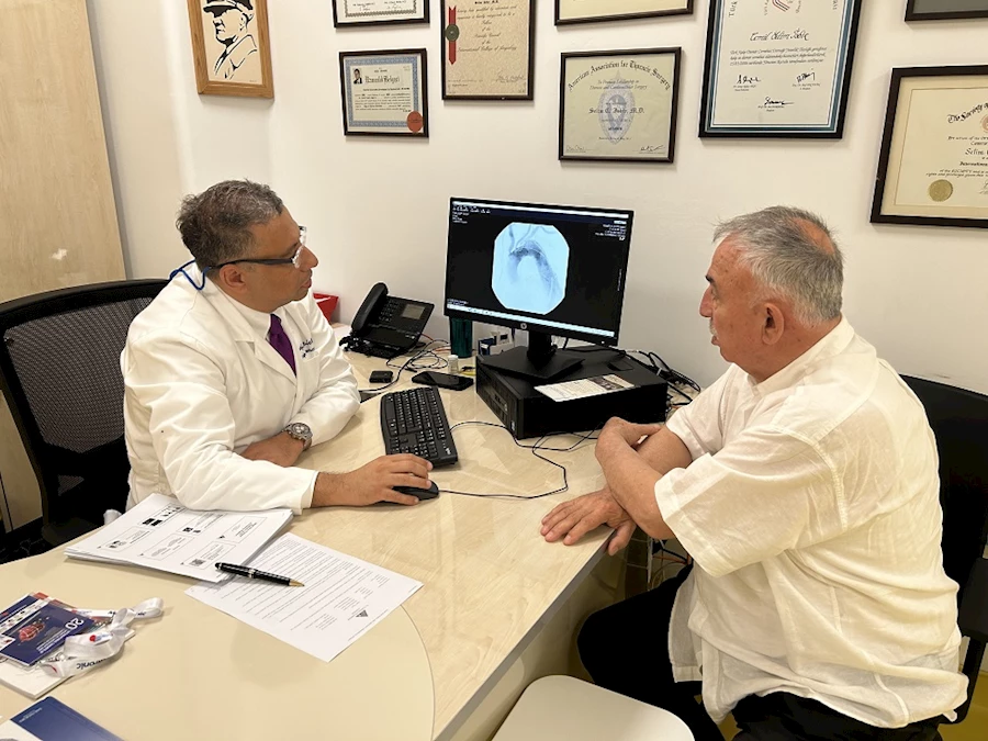 Yusuf Toplusoy’un yıllar önce aort damarındaki genişleme nedeniyle tedavi edilip, sonrasında kontrollerini azalttığını vurgulayan Prof. Dr. İsbir, “Karın bölgesindeki anevrizma göğüste de tespit edildiği için bize geldi. Eş zamanlı olarak hastanın şah damarlarını da kontrol ettik ve şah damarında yüzde 95 darlık tespit ettik. Hastanın önce şah damarını sonra da göğüs anevrizmasını tedavi ettik” dedi.