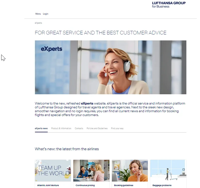 Lufthansa Group, dünya çapındaki seyahat ortaklarına ve B2B müşterilerine yönelik pazarlama iletişimini geliştirme misyonunu sürdürüyor. Avrupa'nın lider havayolu grubu bu amaç doğrultusunda bugün, tüm seyahat acenteleri için "eXperts" resmi Lufthansa Grubu hizmet ve bilgi platformunu yeniden başlattı. Yeni "eXperts", Lufthansa Grubu'nun sunduğu sürekli güncellenen ve uyarlanmış haberlerden yararlanan seyahat acenteleri ve seyahat acentesi profesyonelleri için daha kullanıcı dostu, gezinmesi kolay bir web sitesi. Site, 4 Aralık 2023 tarihinden itibaren Orta Doğu ve Türkiye'deki tüm pazarlarda açılacak. 2024’de ise diğer bölgelerde de kullanıma sunulacak. Dünya çapında yaklaşık 150.000 kullanıcı, Lufthansa Group'un hizmetleri ve ürünleri hakkında bilgi edinmek için eXperts'i kullanıyor. Özellikle seyahat acenteleri artık daha net ve erişimi rahat bilgilerden faydalanacak.