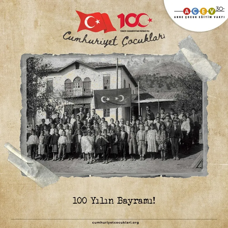 30 yıldır erken yaştaki her çocuğun sağlıklı, mutlu, güvende ve öğreniyor olması için çalışan Anne Çocuk Eğitim Vakfı (AÇEV), Cumhuriyet’in 100. yılını özel bir sanal hatıra kartı ile kutluyor. AÇEV’in oluşturduğu özel web sayfası üzerinden Cumhuriyet okuluna kayıt olan herkes, ‘Cumhuriyet Çocukları’ sanal hatıra kartı ile Türkiye Cumhuriyeti’nin 100. yaşını ölümsüzleştiriyor. AÇEV, herkesi Cumhuriyet’in en kalabalık okulunu oluşturmaya davet ediyor.