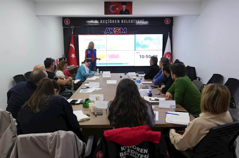 Keçiören Belediyesi Afet İşleri Müdürlüğü bünyesinde görev yapan personele yönelik Afet Farkındalık Eğitmen Eğitimi verildi. Eğitimi başarıyla tamamlayan katılımcılara Afet Farkındalık Eğitimi verebilecek yetkinliğe sahip olduklarını tescil eden eğitmen sertifikası verildi.