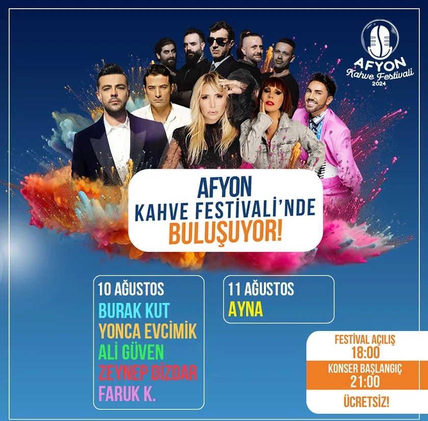 Bölgenin en gözde alışveriş merkezi Park Afyon, 10-11 Ağustos tarihlerinde Afyon Kahve Festivali ile kahve ve müzik severleri buluşturacak. Girişlerin ücretsiz olduğu festivalde Ayna, Burak Kut, Yonca Evcimik, Zeynep Dizdar, Ali Güven ve Faruk K. gibi 90’ların efsanevi sanatçıları sahne alacak.