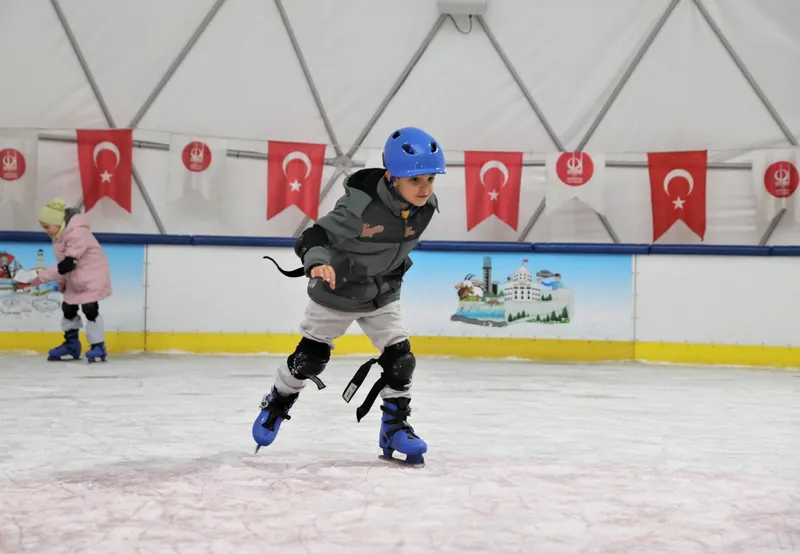 Keçiören Belediyesi'ne ait ücretsiz buz pisti, tatil boyunca çocukları güvenli bir ortamda spor ve eğlenceyle buluşturuyor. Randevu sistemiyle kontrollü kullanım sağlanıyor.
