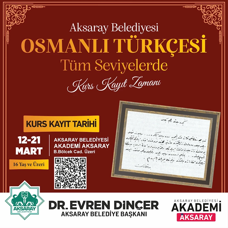 Aksaray Belediye Başkanı Dr. Evren Dinçer, bu tür eğitim faaliyetlerinin bireysel gelişimi desteklemenin yanı sıra, geçmiş ile günümüz arasında köprü kurmada önemli bir rol oynadığını belirterek, vatandaşları kursa katılmaya davet etti.