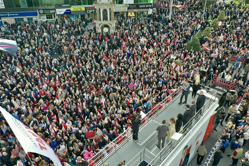 Seçimlere çık kısa bir süre kaldığını hatırlatan İmamoğlu, rakibi Murat Kurum’a, “31 Mart'a kaç gün kaldı? Bunu da adımlayayım mı? 1, 2… Yok, dur; perşembe, cuma, cumartesi. 3 gün. Sonra seçim. Ben bu seçimi niye seviyorum biliyor musunuz? Seçimde herkese eşitleniyor. Milyarderi de eşit, bakkalı da eşit. Köftecisi de eşit, bakanı da eşit” göndermesinde bulundu. Eşitlik durumunun, ülkemize Cumhuriyetin hediyesi olduğuna vurgu yapan İmamoğlu, “Bu güzel Türkiye Cumhuriyeti'ne ne kadar minnettar olsak az. Büyük bir minnettarlık borcumuz var. Onu ne yapacağız? Pazar günü, demokrasimizi ve Cumhuriyetimizi korumak için, hepimiz, hep birlikte demokrasi bayramı adına oy kullanmaya gideceğiz” dedi. İmamoğlu, iktidar kanadıyla kendilerinin anlayış farklılığını, “Birisi diyor ki, ‘Ben her şeyi bilirim.’ Her şeyi kendine ait görüyor. Biz de diyoruz ki; şu an konuştuğumuz bütün meseleler, milletimizin meseleleri, milletimize ait olan şeyleri konuşuyoruz. Milletimizin hakkını, milletimize emanet etmek için konuşuyoruz. Yani sizlerin hakkını, kendi hakkı gibi gören anlayışa karşı, bu pazar günü, hepimiz görevimizi yerine getirmekle yükümlüyüz” sözleriyle dile getirdi.