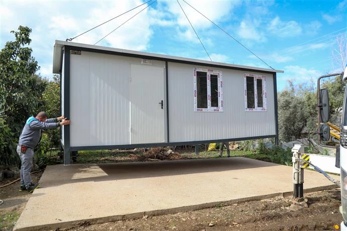 Belediye ekipleri tarafından yerleştirilen konteyner ev, temel ihtiyaçları