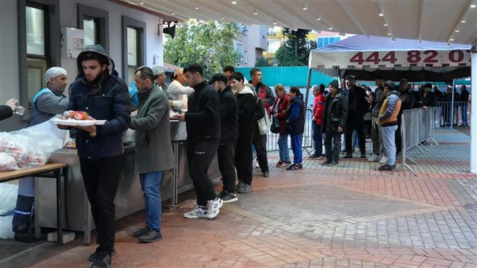 hazırlanan yemekler sunuluyor. Ortalama günlük üç bin kişi iftar noktalarından