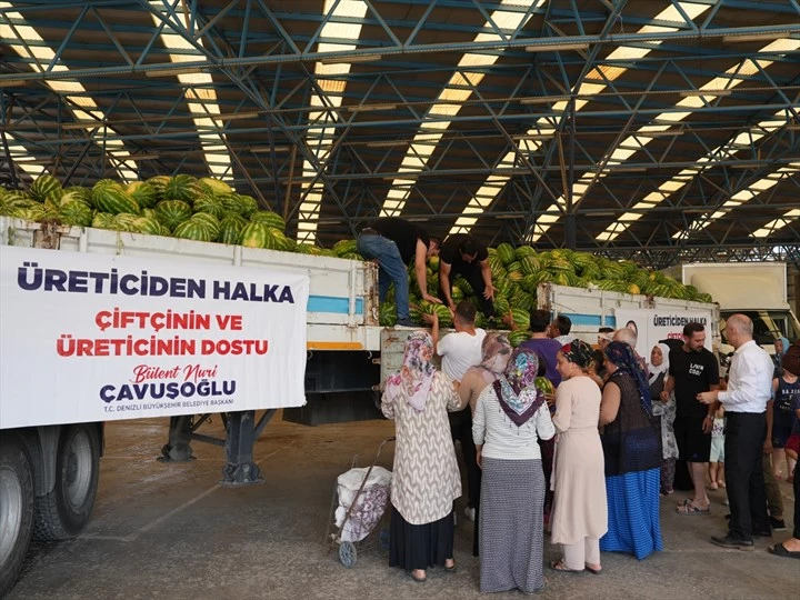 Denizli Büyükşehir Belediyesi, karpuz üreticilerinin elinde kalan tonlarca ürünü satın alarak hem üreticiye nefes aldırdı hem de ihtiyaç sahibi ailelerin sofralarına katkı sağladı.