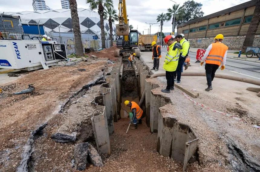 İzmir Büyükşehir Belediyesi İZSU Genel Müdürlüğü, Dünya Bankası finansmanıyla yürütülen Türkiye Deprem, Sel ve Yangın Acil İmar Projesi (TEFWER) kapsamında Alsancak Liman bölgesinde başlattığı altyapı çalışmalarını Şehitler Caddesi’nde sürdürüyor. Yağmur suyu ve atık su hatlarının ayrıştırılmasıyla taşkın ve koku sorunlarına kalıcı çözüm hedefleniyor.