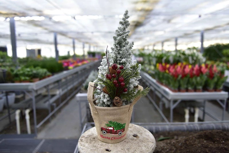 Yılbaşının sembol çiçekleri arasında yer alan ve sadece aralık ayında satışa sunulan kırmızı tomurcuklu ‘kokina’ çiçeğiyle kırmızıya bürünen ANFA Bitki Evlerinde, yılbaşı aranjmanları ve süslenmiş çam ağaçları ilgi görüyor.