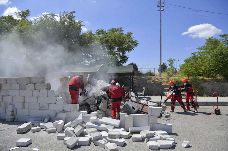 Başta deprem olmak üzere sel, yangın gibi afetlerde en hızlı şekilde sahaya intikal edebilecek donanıma sahip olan ekip tarafından gerçekleştirilen tatbikatta, senaryo gereği bir deprem sonrası yıkılan binanın enkazında kalan yaralı vatandaş kurtarıldı. Ekipler, yaralıyı güvenli şekilde enkazdan çıkarırken acil müdahale sonrası sedyeye alınan yaralı, bekleyen ambulansa nakledildi.