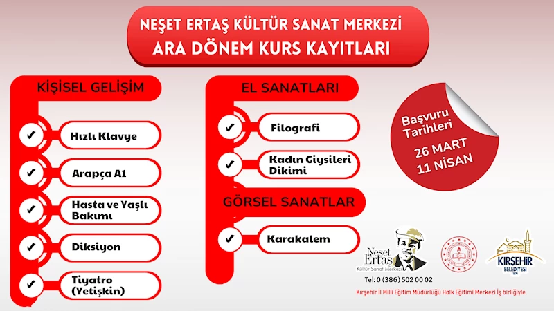 tarafından açılan kurslar, önceki dönemlerde de olduğu gibi Kırşehirli