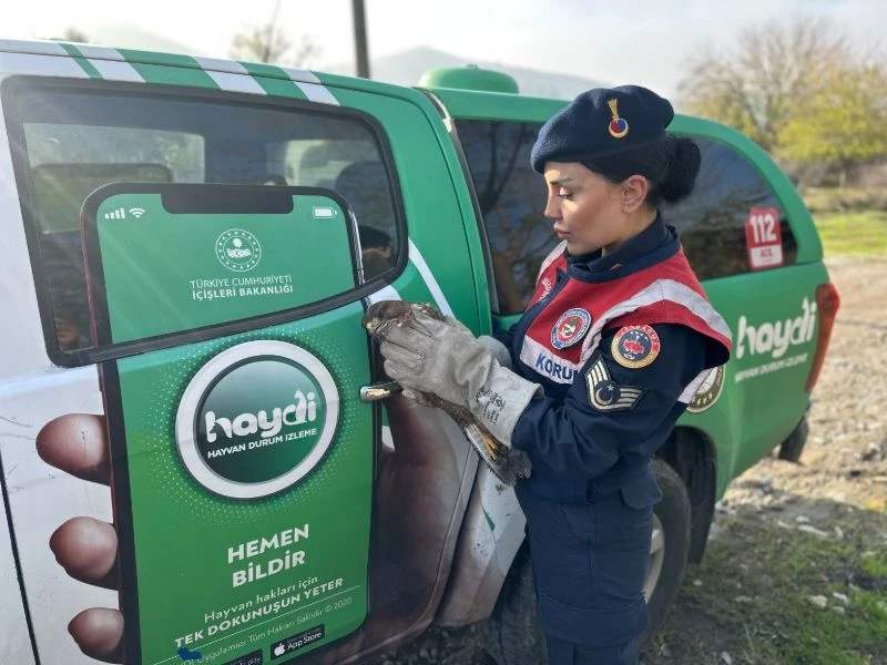Aydın’ın Çine ilçesinde uçamayacak kadar yaralı halde bulunan kızıl şahin, jandarma ekiplerince doğa korumaya teslim edildi.