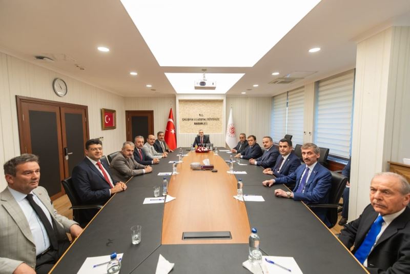 Çalışma ve Sosyal Güvenlik Bakanı Vedat Işıkhan, Türkiye Kamu Çalışanları Sendikaları Konfederasyonu (Kamu-Sen) Genel Başkanı Önder Kahveci ve beraberindeki heyetle bir araya geldi.