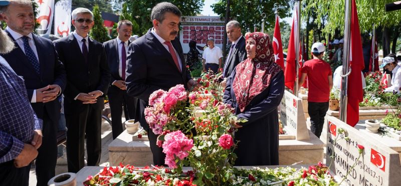 Millî Eğitim Bakanı Yusuf Tekin, Karşıyaka Mezarlığı'ndaki 15 Temmuz Şehitliği'nde düzenlenen törende darbe girişiminde şehit olan 15 Temmuz şehitlerini ziyaret etti. Kur'an-ı Kerim ve duaların okunduğu törende Bakan Tekin, şehit mezarlarına karanfil bıraktı.