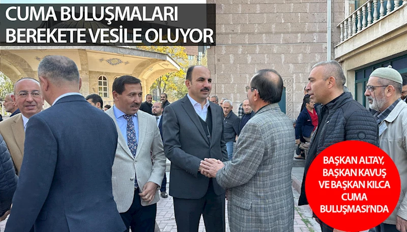Başkan Altay; Karatay Belediye Başkanı Hasan Kılca, Meram Belediye Başkanı Mustafa Kavuş, AK Parti Karatay İlçe Başkanı Mehmet Genç ve Konya Ticaret Borsası (KTB) Yönetim Kurulu Başkanı Hüseyin Çevik ile birlikte Büyük Buğday Pazarı Camii’nde Cuma namazı sonrası bölge esnafı ve vatandaşların mübarek Cumasını tebrik etti.