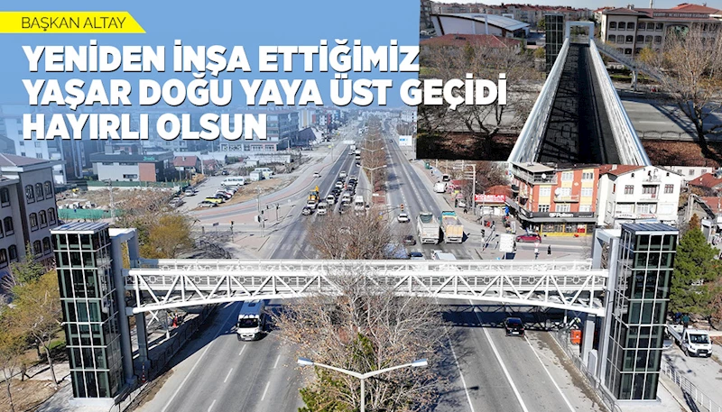 Konya’dan ulaşım kalitesinin yükselmesi için köprülü kavşaklar, yeni caddeler, yaya üst geçitleri ve cadde düzenlemeleri yaparken bir taraftan da mevcut yaya üst geçitlerini yenilediklerini kaydeden Başkan Altay, “Geçtiğimiz yıl Adana Çevre Yolu üzerinde bulunan Yaşar Doğu Üst Geçidi metal bir platform taşıyan TIR’ın çarpması sonucu ağır hasar almıştı. Üst geçidi yeniden yapmak için yürüttüğümüz çalışmaları tamamlayarak yeni yaya üst geçidini hemşehrilerimizin hizmetine sunduk. Modern tasarımı ve engelli dostu yapısıyla yaklaşık 20 milyon liraya mal olan yaya üst geçidinin şehrimiz için hayırlı olmasını diliyorum” ifadelerini kullandı.