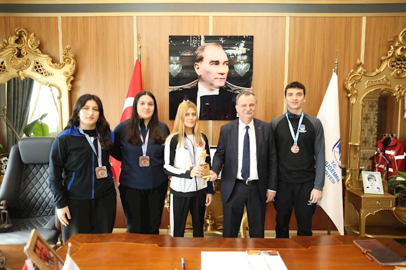 Yunusemre Belediye Başkanı Semih Balaban, Ankara’da yapılan Gençler Türkiye Judo Şampiyonası’nda Türkiye şampiyonu olan Yunusemre Belediyespor’un sporcularından Sura Nil Karasu, Türkiye 3’üncüsü olan Irmak Ceylin Güçtekin ve Fulya Ergen ile Gaziantep'te düzenlenen Türkiye Yüzme Şampiyonası'nda iyi bir performans göstererek Türkiye 5'incisi olarak Umut Özköylü'yü makamında ağırladı. Sporcuları ve antrenörleri tebrik ederek ödüllendiren Başkan Balaban, elde edilen gurur dolu başarılarla Türkiye'nin spor altyapısına katkı sağladıklarını söyledi. Katıldıkları her alanda Manisa'yı, Yunusemre'yi ve ülkemizi en iyi şekilde temsil eden, sporcu ahlakı ile büyüyen bireyler yetiştirmeyi amaçladıklarını sözlerine ekleyen Balaban, güzel hayallerin peşinden koşan çocuk ve gençlerin imkanlar ölçüsünde destekçisi olmaya devam edeceklerini kaydetti. Ziyarete Belediye Başkan Yardımcısı Hakan Gürtunca ve Yunusemre Belediyespor Başkanı Bülent Kanik de eşlik etti.