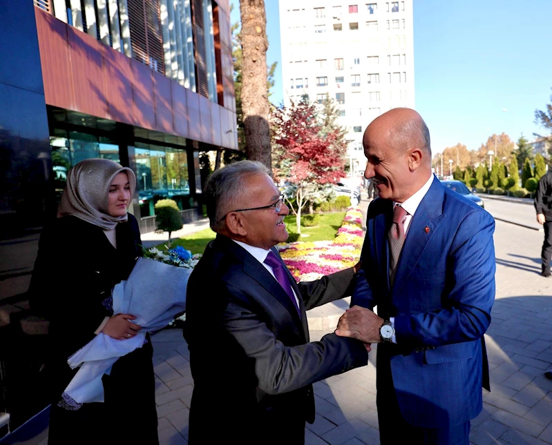 Başkan Büyükkılıç, YÖK Başkanı Özvar’ı başkanlık girişinde çiçeklerle karşılarken, daha sonra başkanlık makamına geçti. Özvar’a, Erciyes Üniversitesi Rektörü Prof. Dr. Fatih Altun da eşlik etti.