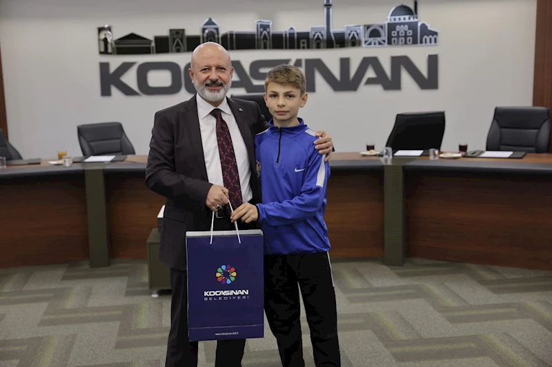 Kocasinan Belediye Başkanı Ahmet Çolakbayrakdar, U14 Ligi'nde Kayseri ikincisi olan Kocasinan Belediyesi Spor Kulübü Futbol Takımı sporcularını makamında ağırladı. Genç sporcuları tebrik ederek başarılarının devamını dileyen Başkan Çolakbayrakdar, “Ülkemizin geleceği olan evlatlarımız, ahlaklı ve faydalı bireyler olarak yetişerek, ilerleyen yıllarda farklı alanlarda ülkemize katkı sağlayacaklardır” dedi.