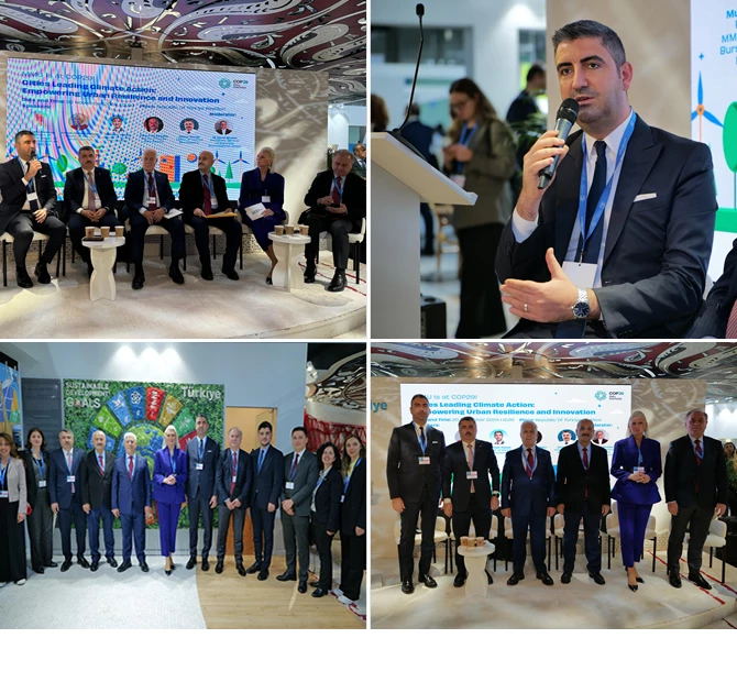 COP29 kapsamında düzenlenen "İklim Eylemine Öncülük Eden Şehirler" oturumu, Marmara Belediyeler Birliği (MBB) tarafından Azerbaycan’ın başkenti Bakü’de, Türkiye Pavilyonu’nda gerçekleştirildi.
