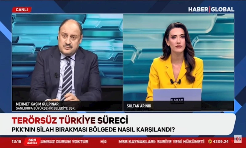 Şanlıurfa Büyükşehir Belediye Başkanı Mehmet Kasım Gülpınar, Haber Global Televizyonunda Sultan Arınır’ın sunduğu Gündem programına konuk oldu.