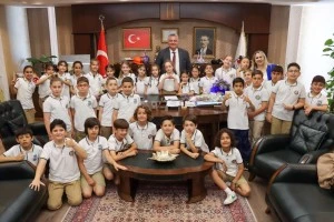 BAŞKAN GÜREL MİNİK ÖĞRENCİLERİ AĞIRLADI