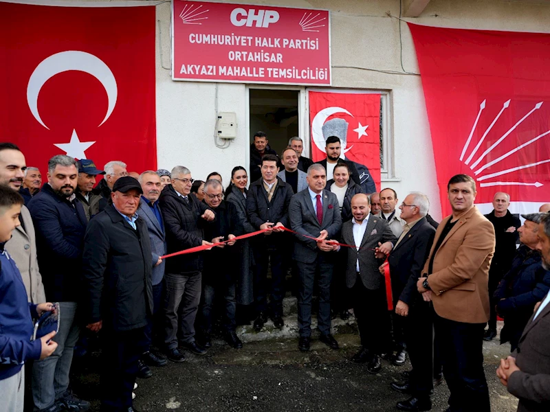 Ortahisar Belediye Başkanı Ahmet Kaya, eşi Tuba Kaya ile birlikte CHP Akyazı Mahalle Temsilciliği’nin açılışına katıldı. CHP Ortahisar İlçe Başkanı Haluk Batmaz, ORBEL Genel Müdürü Celal Akaç, Belediye Meclis Üyeleri, çok sayıda partili ve vatandaşların katıldığı açılışta konuşan Başkan Kaya, 31 Mart 2024 Yerel Seçimlerinde CHP’nin Akyazı’da birinci parti olduğunu hatırlattı.