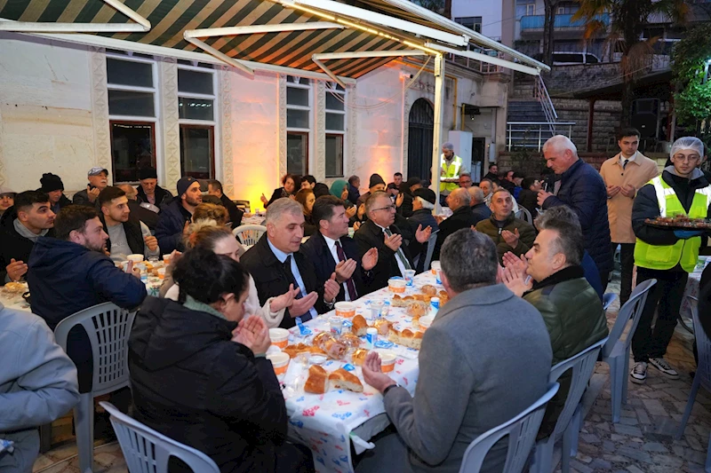 Başkan Kaya, Karşıyaka Mahallesi’ndeki Fatma Hatun Camii önündeki iftara davetli olan vatandaşlarla selamlaştı, Ramazanlarını kutladı.
