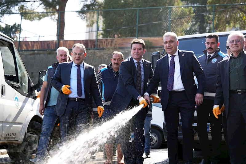Konuşmaların ardından eldivenlerini takan Başkan Kaya, önce ağaç budadı, ardından parktaki çim biçme aracının başına geçti ve çim kesti. Katılımcılarla birlikte yerdeki çöpleri toplayan Başkan Kaya, yıkama aracıyla da sokağı yıkadı.