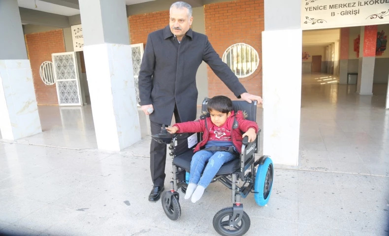 Yenice Merkez İlkokulu’nda eğitim gören başta engelli çocukların hayatlarını kolaylaştırmak amacıyla başlattığı projeye destek olan Eyyübiye Belediyesi çalışanları, temin edilen akülü tekerlekli sandalyeyi okula götürerek kurulumunu yaptı. Çalışır hale getirilen akülü tekerlekli sandalyeyi, doğuştan yürüme engelli olan öğrenci Yakup Çiftçi’ye teslim etti. Kimseye ihtiyaç duymadan okul bahçesinde gezinmeye ve sınıfına gidebilme imkânına kavuşan Yakup Çiftçi’nin sevincine okul arkadaşları da ortak oldu.