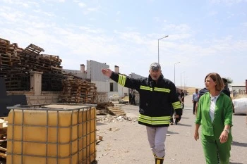 Olay yerine gelen Başkan Ayşe Ünlüce, İtfaiye Dairesi Başkanı Dr. Mehmet Ali Çeliksoy’dan yangına müdahale süreci ve yapılan çalışmalar hakkında bilgi aldı.