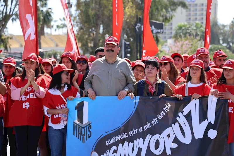 1 Mayıs Emek ve Dayanışma Günü Mersin’de coşkuyla kutlandı. Sendikalar, sivil toplum kuruluşları, siyasi partiler ve yurttaşların yoğun katılımıyla gerçekleşen kutlamalarda eski Tevfik Sırrı Gür Stadyumu önünde toplanan kalabalık Cumhuriyet Meydanı’na yürüdü. Meydanda halaylar çekildi, işçi ve emekçilerin talepleri dile getirildi.