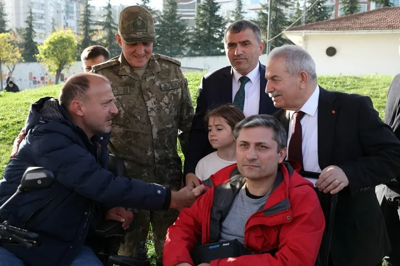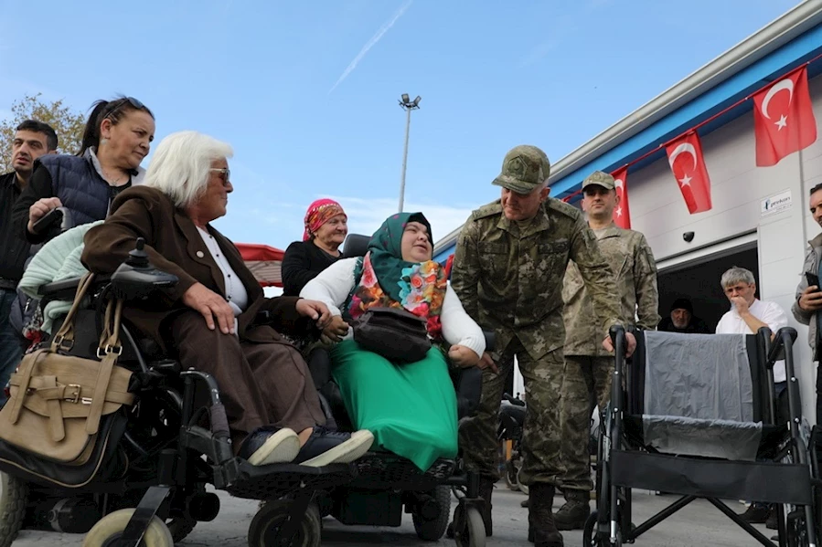 Programda Samsun Garnizon Komutanı Gazi Tümgeneral Davut Alâ, 2 adet tekerlekli sandalyeyi Türkiye Sakatlar Derneği Samsun Şubesi üyelerine hediye etti.