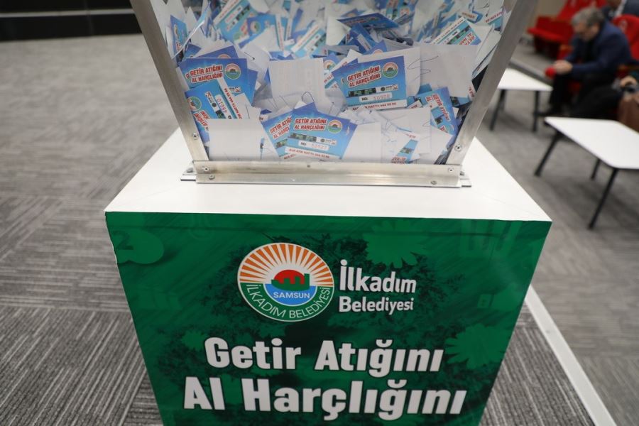 Çekiliş öncesi 8. dönem kazanana talihlilere 500 TL’lik alışveriş kartlarını İlkadım Belediyesi Başkan Yardımcısı Şerif Mırık,”9 ay öncesi Belediye Başkanımız Sn Necattin Demirtaş’ın talimatlarıyla hayata geçen”Getir Atığını Al Harçlığını ” çevrenizdeki sitelere ve eş, dost akrabalarınızı da duyurarak bu projeyi geniş kitlelere yaymak istiyoruz. Bunu da birlikte başaracağımıza inancım tam” diye konuştu.
