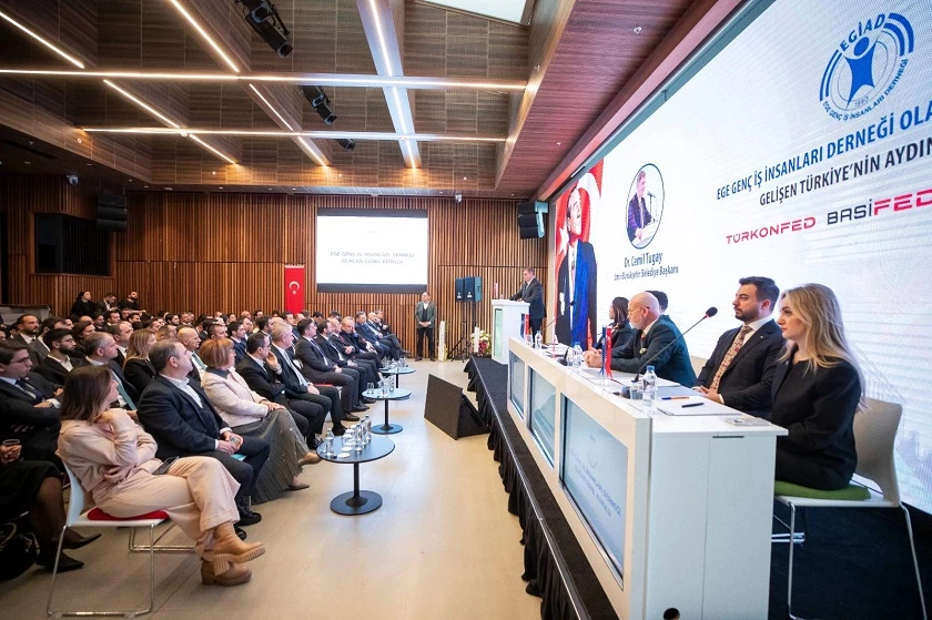 Ege Genç İş İnsanları Derneği'nin olağan genel kuruluna katılan İzmir Büyükşehir Belediye Başkanı Dr. Cemil Tugay, ülkenin içinde bulunduğu karanlık tablonun dağılmasında en büyük umudun gençler olduğunu söyledi. Başkan Dr. Cemil Tugay, kenti temsil eden tüm kurumlarla iş birliği halinde çalışacaklarını belirterek “İzmir'in potansiyelini beklendiği şekilde harekete geçireceğiz” dedi.