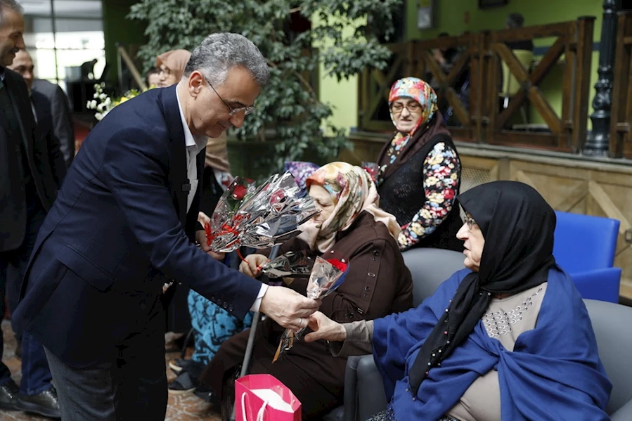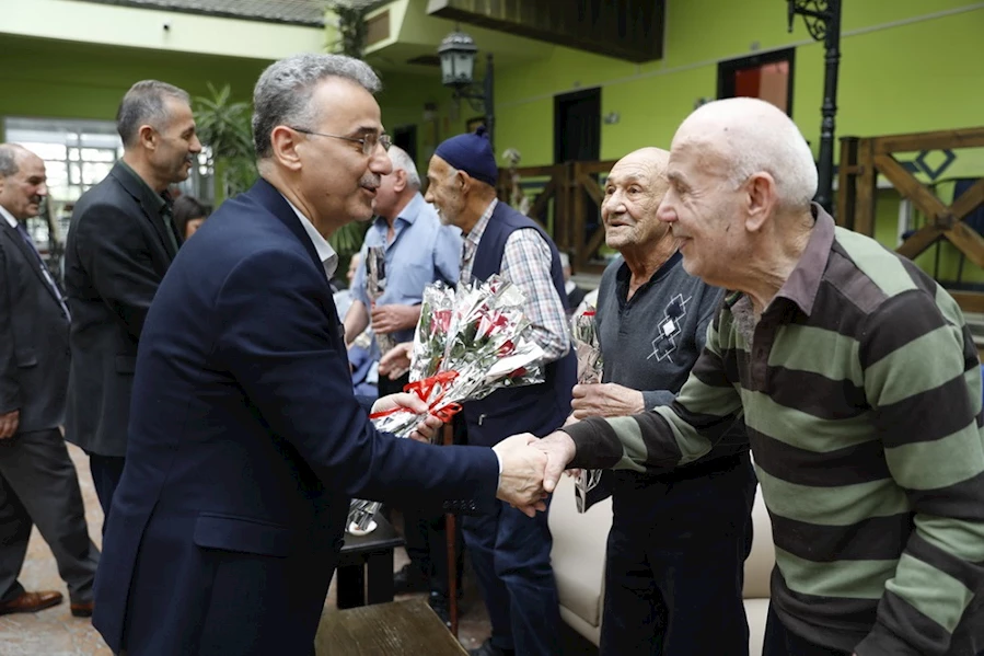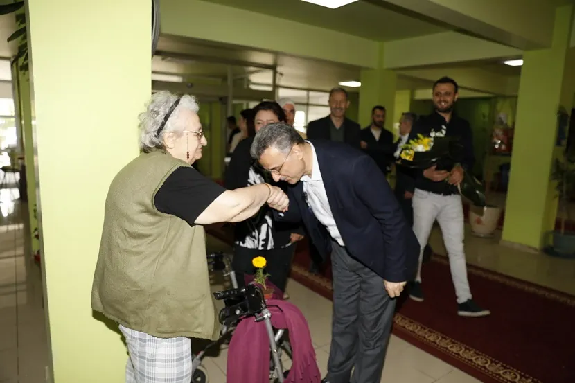 Başkan İhsan Kurnaz, huzurevi sakinleri ile sohbet etti, herhangi bir ihtiyaçları olup olmadığını sordu. Her birinin ellerini tek tek öperek çiçek hediye etti.