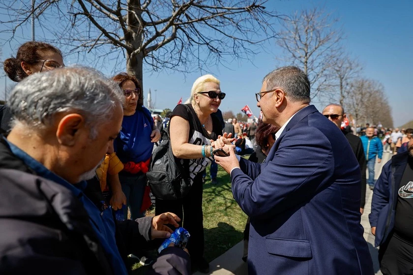 İstanbul Maltepe, CHP’nin Cumhurbaşkanı adayı ve İstanbul Büyükşehir Belediye Başkanı Ekrem İmamoğlu’nun tutuklanmasını protesto eden iki milyon vatandaşın mitingine sahne oldu. CHP Genel Başkanı Özgür Özel'in önemli açıklamalarda bulunduğu mitinge, İzmir Büyükşehir Belediye Başkanı Dr. Cemil Tugay da katılarak adalet ve demokrasi mesajı verdi. Başkan Tugay vatandaşlarla selamlaşarak fotoğraf çekildi. Ülkenin dört bir yanından gelerek alanı dolduran vatandaşlar, ellerindeki Türk bayrakları ve dövizlerle sloganlar attı.