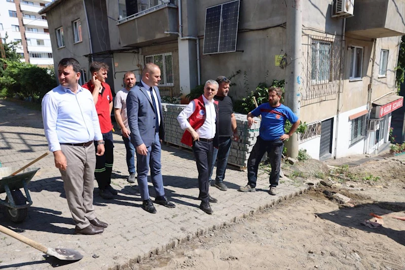 Kaşüstü Mahallesi Öğretmenevleri Caddesi’nde devam eden parke tamirat çalışmalarını yerinde inceledi.